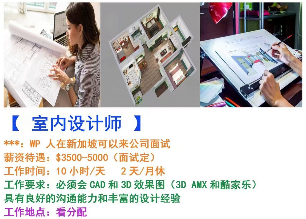 工作要求:必须会CAD和3D效果图(3D AMX和酷家乐)具有良好的沟通能力和丰富的设计经验