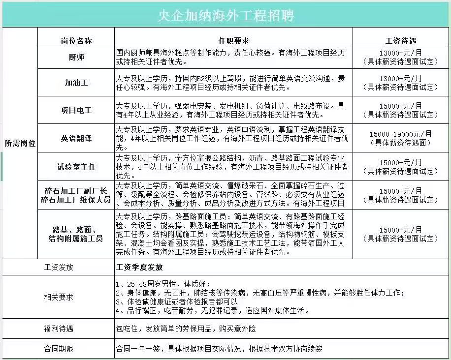 ✅要求:男性,48岁内,从事过中铁项目优先,身体健康,无犯罪记录。