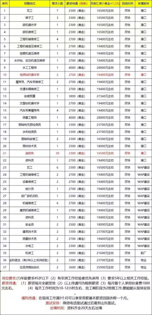 [红包](矿土)化验员:2300美金/月 矿土取样采样并化验、能接受带班。
