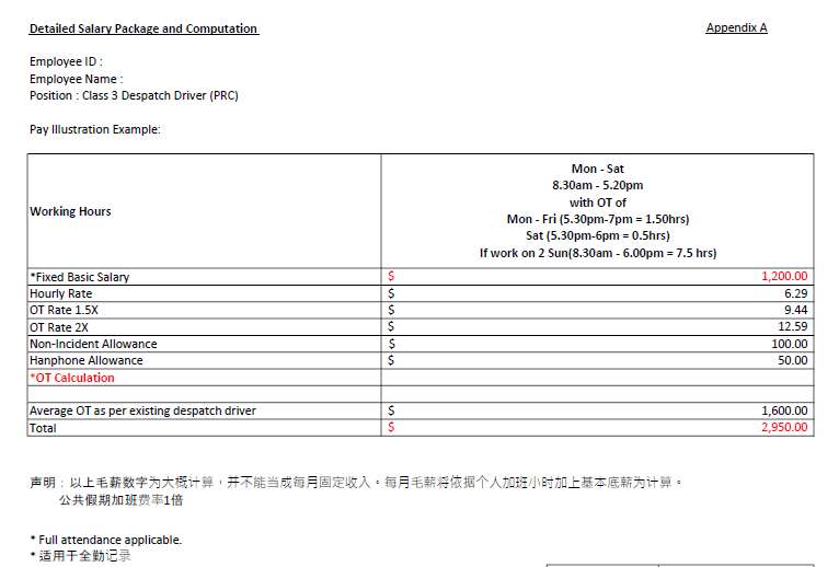 ***:年假病假按劳工部规定,参考综合收入S$2950