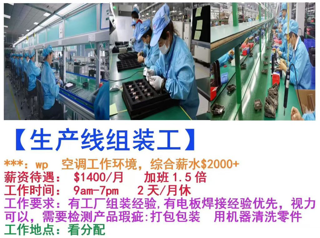 2025.11.17 【生产线组装工】$1400/月 加班1.5倍