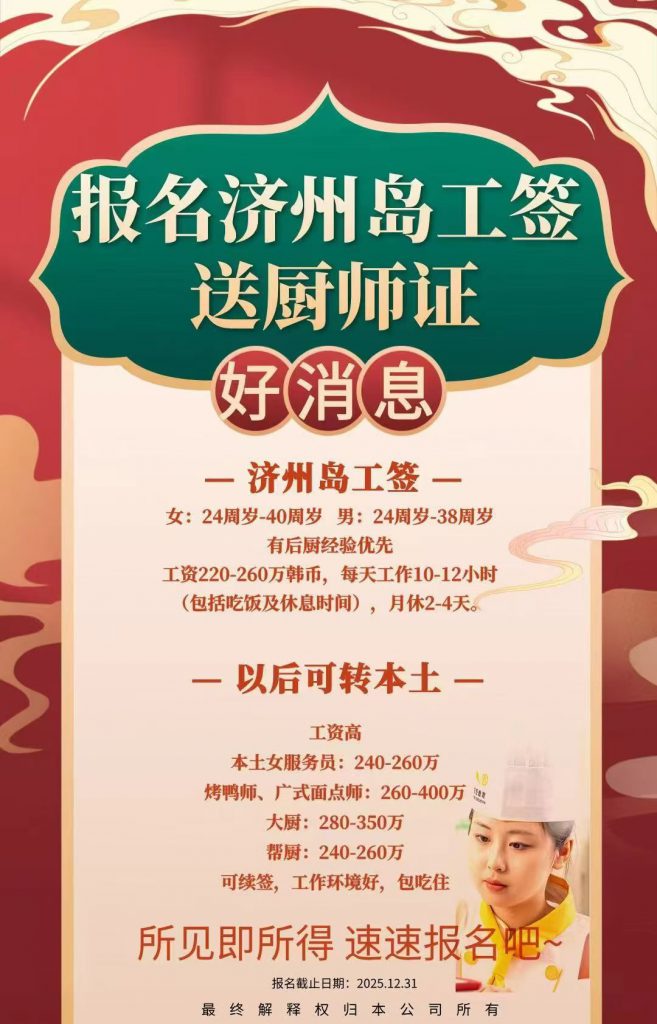2025.12.3 随到随学~开课啦~~韩国济州岛服务员火热报名中!